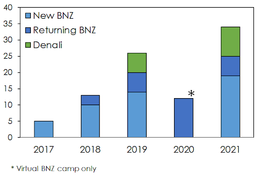 Camp Expansion: Expand day camp to two camps (16 kids per camp) and add a Denali backcountry backpacking trip for experienced youth